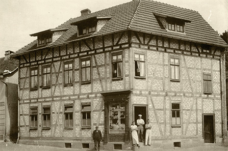 Elise Schumann: Lebensmittel- und Kolonialwarenladen mit Verkauf von Wurst der Fleischerei Niebergall (heute Steakhaus „Saloon“)