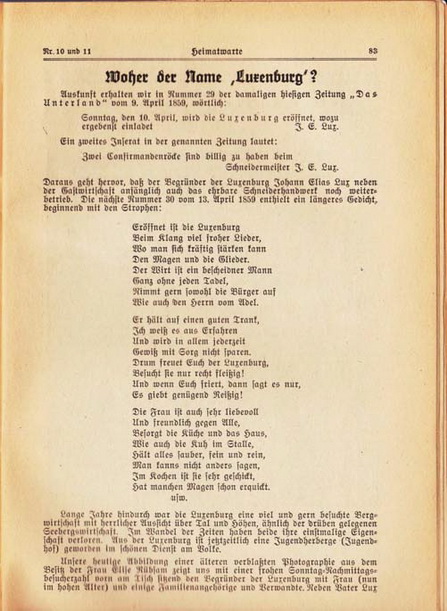 Zugleich mache ich hiermit bekannt, daß Mittwoch, den 19.d.M. Tanzmusik auf der Luxenburg gehalten werden wird, wozu ich verehrliches Publikum höflichst einlade; für Speisen und Getränke wird bestens sorgen
